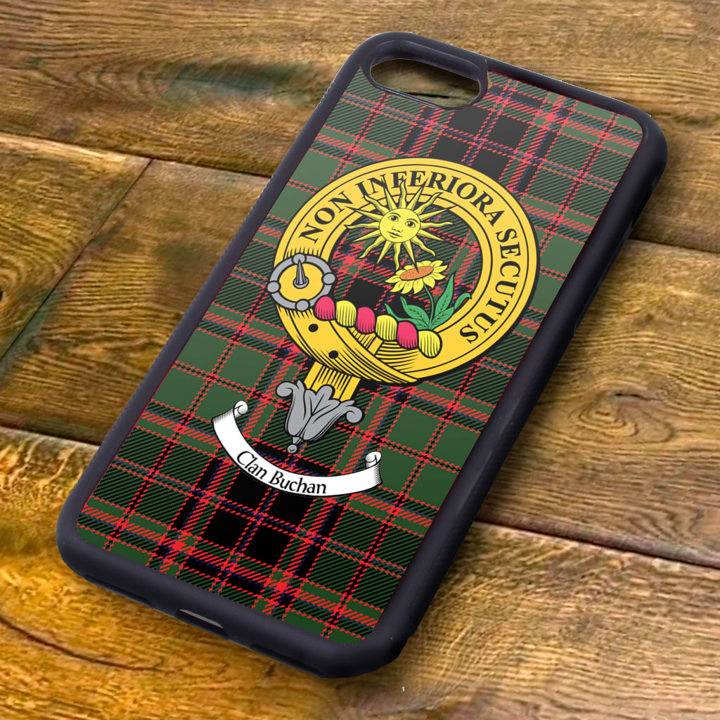 Show off your Scottish pride and protect your iPhone with the Buchan Tartan and Clan Crest iPhone Rubber Case. Designed to fit iPhones from 5 onwards, this stylish case is not only visually appealing but also provides sturdy protection for your device. Its aluminum back ensures durability while displaying your clan crest in high quality.