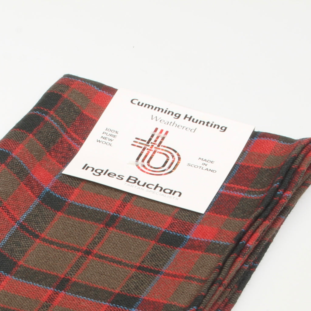 Looking to stand out in the crowd? Look no further than our Scarf in Cumming Hunting Weathered Wool Tartan! Made from 100% pure new wool, this lightweight scarf is not only a fashion accessory but also a statement piece that will turn heads wherever you go. Whether you're wearing it in warmer climates or using it as a sash for children, this versatile scarf is suitable for both males and females.