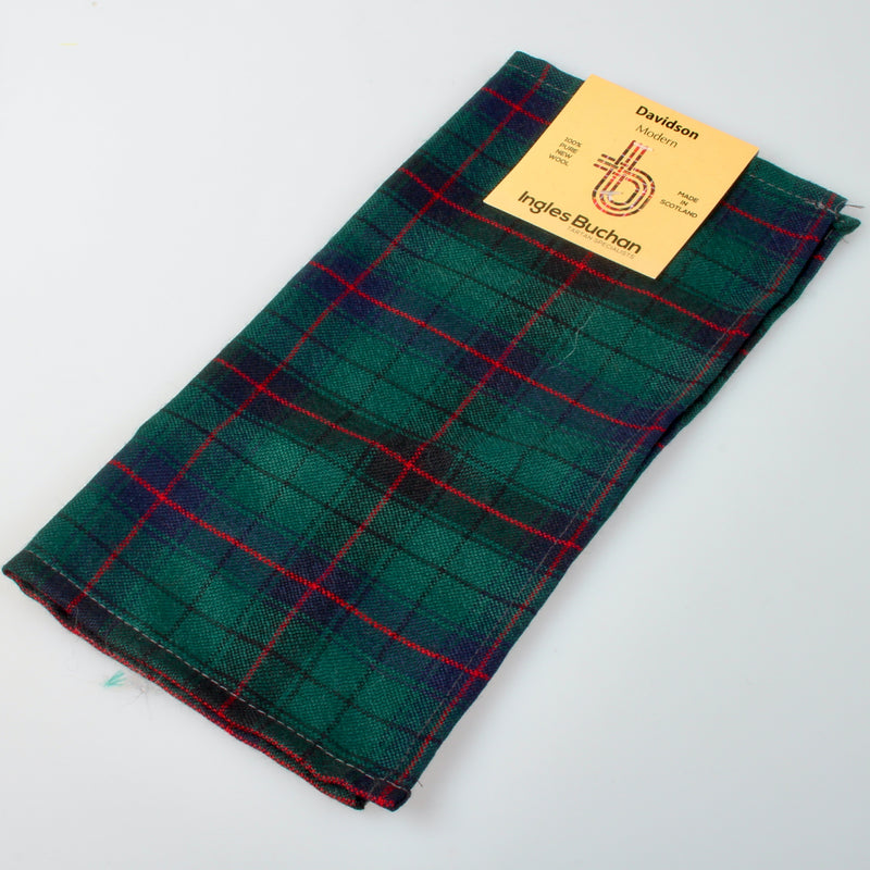 Achieve the perfect finishing touch to your formal outfit with our Wool Tartan Pocket Square in Davidson Modern Tartan. Made from 100% pure new wool, this tartan handkerchief adds a wow factor to your ensemble. Whether you fold it into the top pocket of a dress jacket or pair it with a tie, bow tie, vest, or cummerbund, it effortlessly elevates your look.