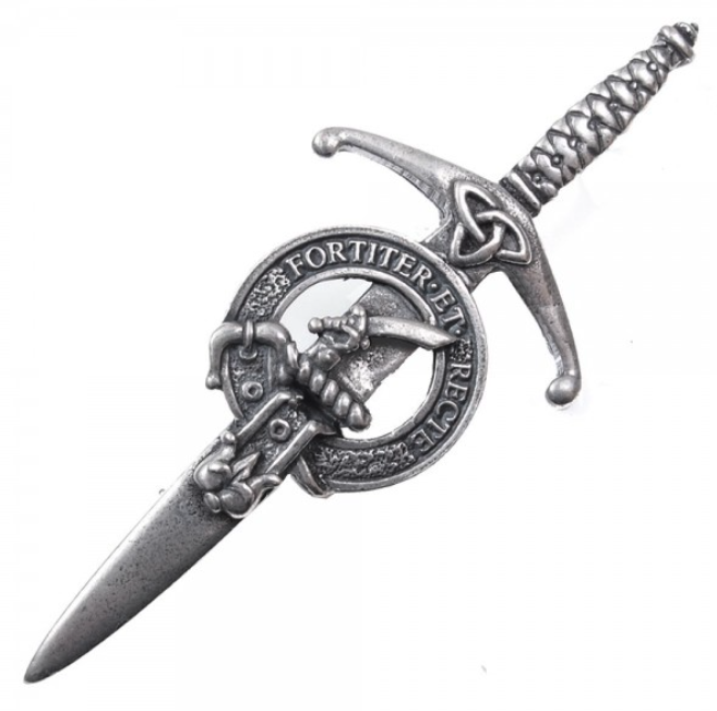 This pewter broadsword style kilt pin has an antique palladium finish and comes in a range of more than 200 clan crests.