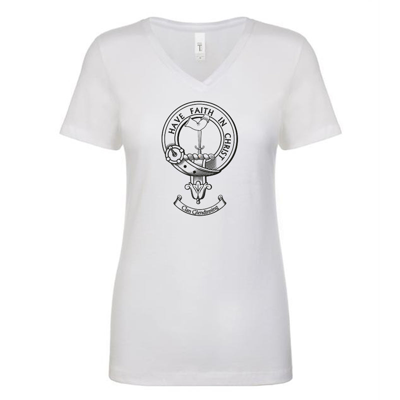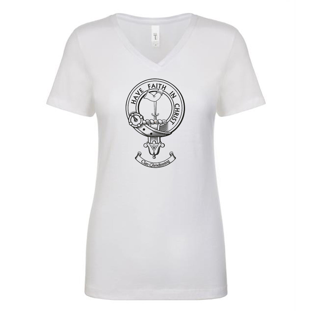 Elevate your wardrobe with the Glendinning Clan Crest Ladies Outline T-Shirt. Order yours today and show off your Scottish pride in style!