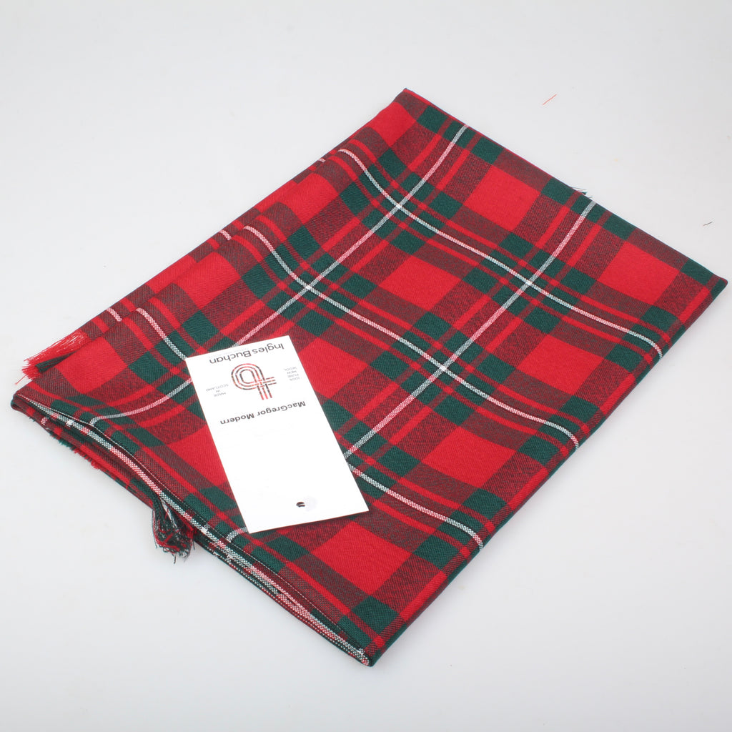 Looking for a versatile accessory that combines style, warmth, and functionality? Look no further than the MacGregor Modern Tartan Shawl. Made from 100% pure new wool, this shawl is crafted with the finest 8oz cloth weight, offering a lightweight feel that can be easily draped or wrapped to suit your style. Measuring 54"x54" and fringed on all sides, this shawl is not only perfect for keeping the chill away but also makes a great table cover for those special occasions.