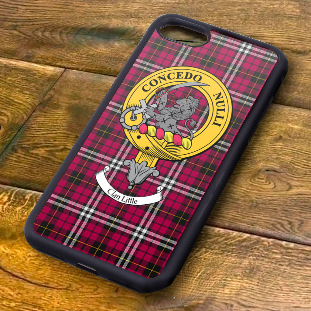Show off your Scottish pride with the Little Tartan and Clan Crest iPhone Rubber Case! This stylish and durable case is compatible with iPhones from the 5 onwards. It features a robust aluminum back emblazoned with your very own clan crest, making it a unique accessory that reflects your heritage.