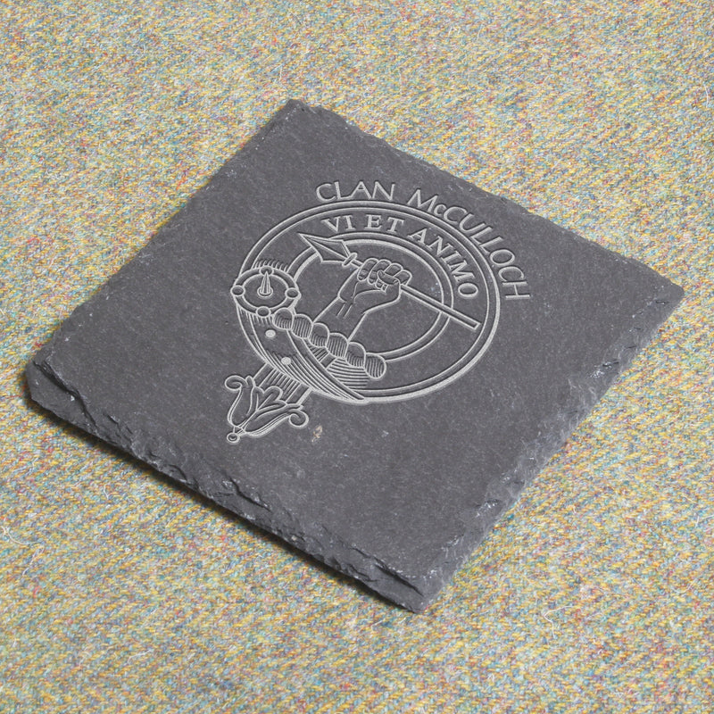 - Add a touch of elegance to your home with the McCulloch Clan Crest Slate Coaster
