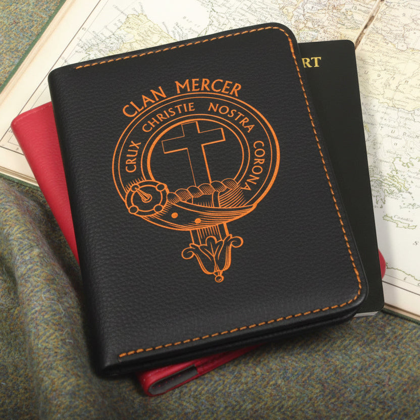 Mercer Clan Crest Leather Passport Cover