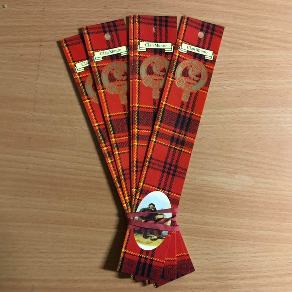 Each bookmark features an all-over tartan image, showcasing the iconic pattern associated with the Munro clan. It also includes your clan crest, beautifully reproduced from the famous RR McIan prints. With these bookmarks, you can bring a touch of Scottish tradition and heritage to your reading experience.