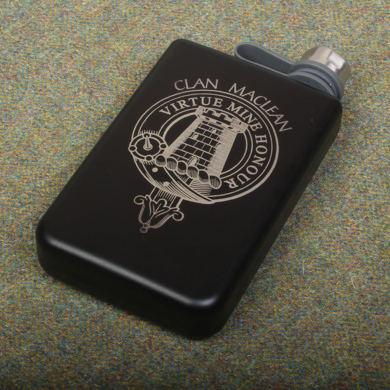 MacLean Clan Crest Black Steel 8oz Trekking Flask