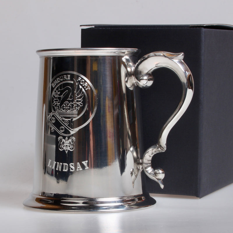 Whether you're a proud member of the Lindsay clan or simply appreciate the rich history and tradition of Scotland, this engraved pewter tankard is a must-have. Order yours today and raise a glass to your Scottish roots!