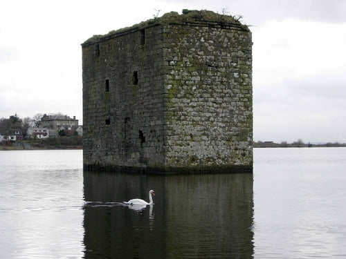 Stanely Castle is located in the waters of Stanely Reservoir, to the south of Paisley, Scotland, at the foot of the Gleniffer Braes. It was probably built in the early 15th century, on an island within a marsh. The castle is now a ruin. Stanely was the ancient seat of the Danzielstons. In the early 15th century the estate passed to the Maxwells of Calderwood, who sold it on in 1629 to Lady Ross of Hawhead. In the 18th century, it passed to the Boyle Earls of Glasgow. The castle was then used as a school, but was abandoned by the early 19th century. It was sold by the 4th Earl of Glasgow to the Paisley Water Company, who built the present reservoir.