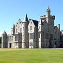 Balfour Castle dominates the south west end of the island of Shapinsay, standing proudly in front of a belt of woodland close to the shore, it’s location is so prominent that it is clearly visible from the top of the tower of St Magnus Cathedral in Kirkwall. Balfour Castle dates back to 1782 when Thomas Balfour purchased the estate of Sound, and had a house called Cliffdale built on it. In 1846 the estate passed to his grandson, David Balfour. The following year David Balfour engaged the Edinburgh architect David Bryce, and the building of Balfour Castle began. It was finished in 1848. Much of the original house still exists within the structure of the castle, but Bryce sandwiched it between a service wing to the north and the imposing three story (plus towers, turrets etc) stack of public rooms now forming the south side of the castle overlooking the sea.