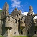 The northernmost castle in the British Isles, Muness has remarkably fine architectural details. Built by the Chamberlain of Shetland in 1598, destroyed by French pirates in 1627, abandoned in the late 18th century, and now a roofless ruin.