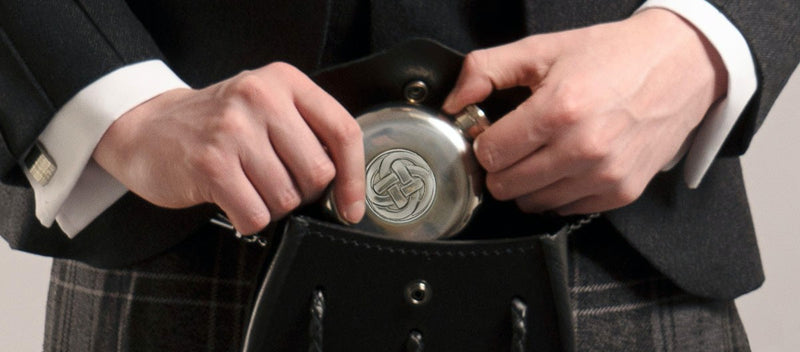 4oz Pewter Sporran Flask with Engraved Clan Crest
