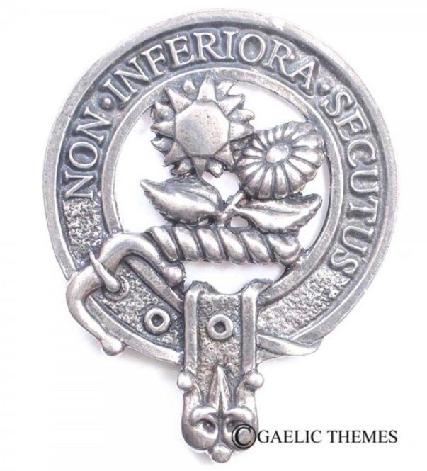 With a choice of over 200 crests, the clan crest badge is a popular item for both everyday wear and clan gatherings. This pewter clan crest badge can be worn as a cap badge or large brooch pin. The crest uses the traditional belted design representing the clansman belt wrapped around the clan crest. The symbol of a clan member.