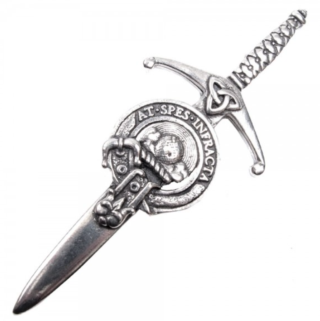 This pewter broadsword style kilt pin has an antique palladium finish and comes in a range of more than 200 clan crests.