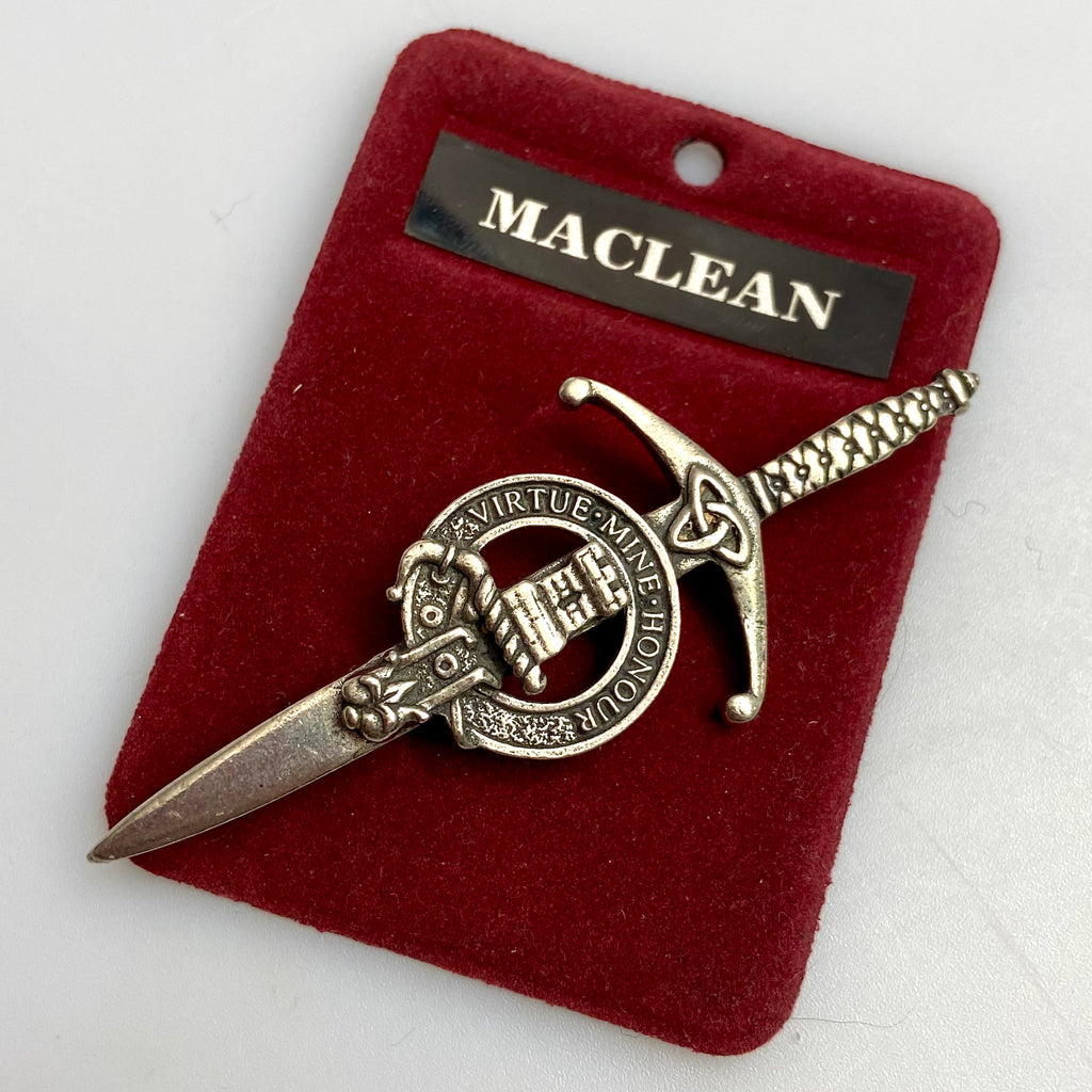 This pewter broadsword style kilt pin has an antique palladium finish and comes in a range of more than 200 clan crests.