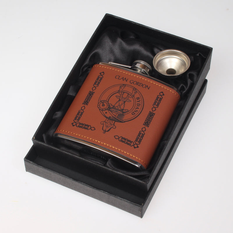 Don't miss out on the opportunity to own this remarkable Gordon Clan Crest PU Leather Covered Hip Flask. Order yours today and experience the perfect blend of style and functionality.