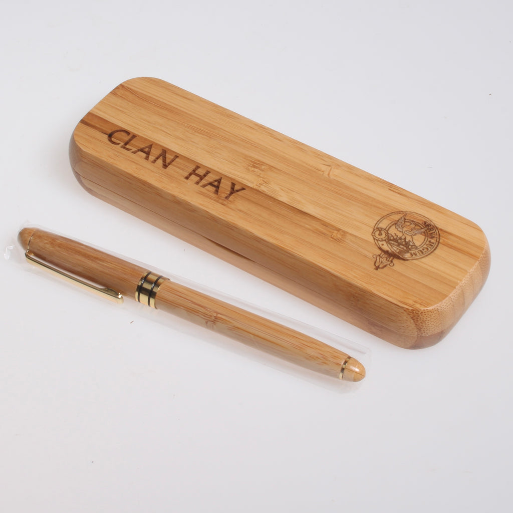 Make a statement with the Hay Clan Crest Fountain Pen Case with Pen. Whether it's for yourself or as a gift for a loved one, this pen set is bound to impress. Indulge in the joy of writing and elevate your everyday tasks with a touch of refinement.