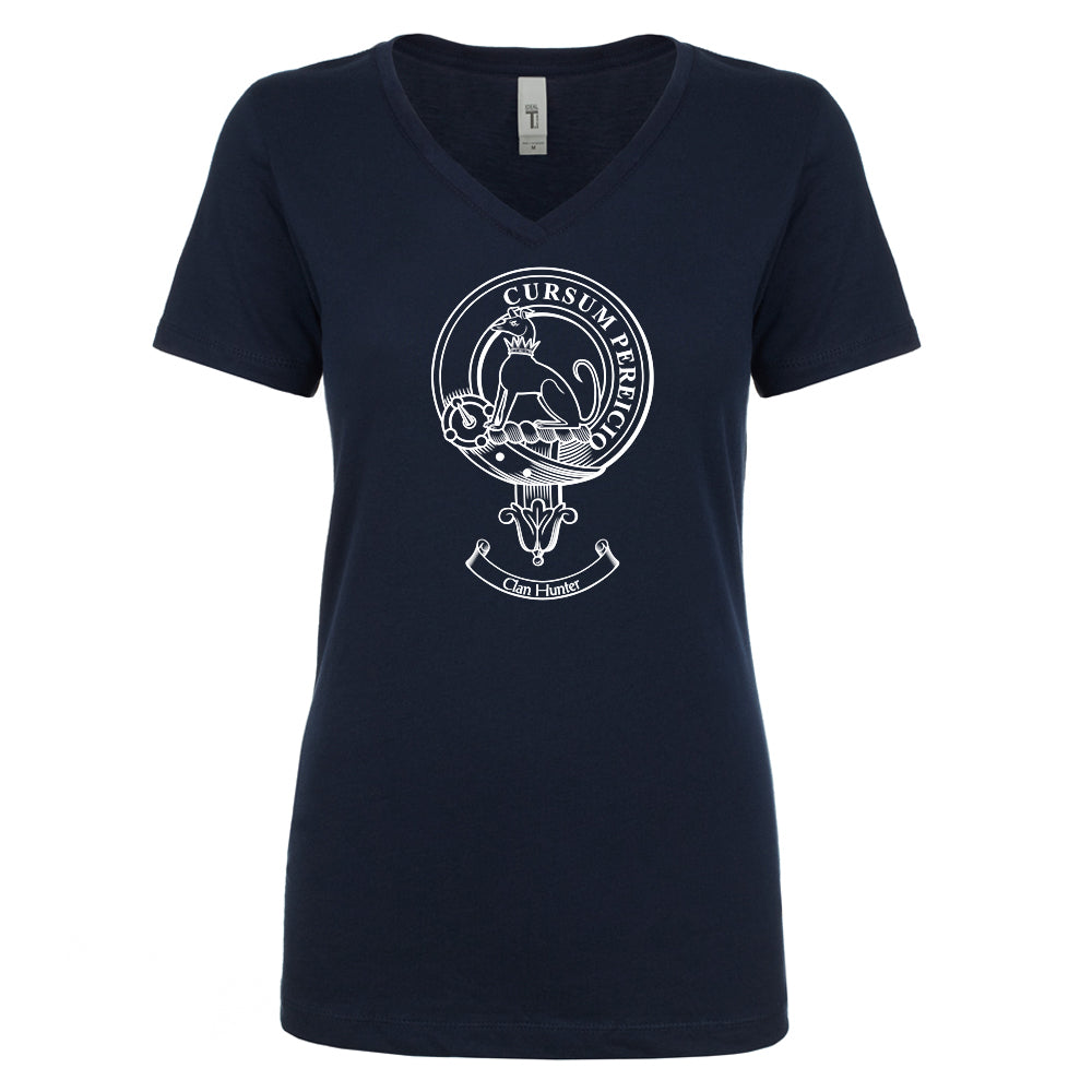 So why wait? Show off your Scottish roots and elevate your style with our Hunter Clan Crest Ladies Outline T-Shirt. Order yours today and proudly represent the Hunter Clan wherever you go!