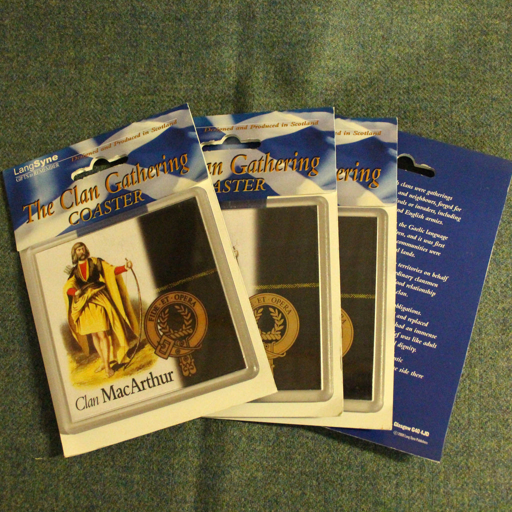 Upgrade your entertaining experience and add a touch of elegance to your coffee table, bar, or dining area with these exquisite MacArthur Clan Crest Coasters. Order your set of 4 today!