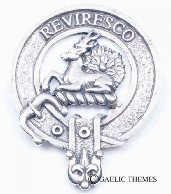 With a choice of over 200 crests, the clan crest badge is a popular item for both everyday wear and clan gatherings. This pewter clan crest badge can be worn as a cap badge or large brooch pin. The crest uses the traditional belted design representing the clansman belt wrapped around the clan crest. The symbol of a clan member.