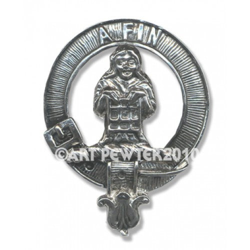 Expertly crafted from pewter and coated in palladium, this clan crest badge is not only a symbol of your lineage but also a stylish accessory. With its generously sized design of around 40mm (1.75"), this badge can be easily worn as a cap badge or a large brooch pin, giving you versatile options to display your clan loyalty.