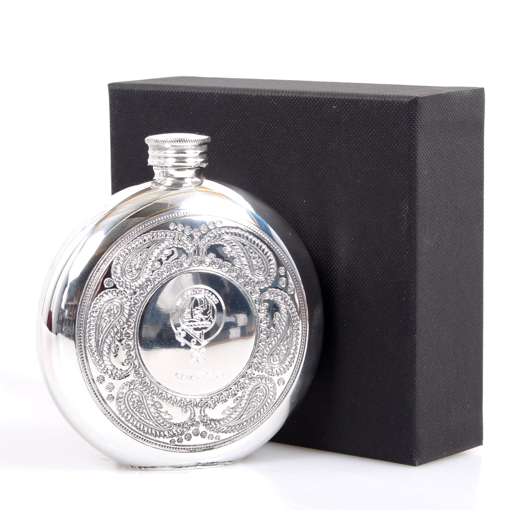 Introducing the Paisley Pattern Clan Crest Sporran Flask, a must-have accessory for anyone seeking a touch of Scottish heritage and style. Crafted with care, this stunning pewter flask is adorned with the iconic Paisley Pattern, a symbol of elegance and timeless beauty.