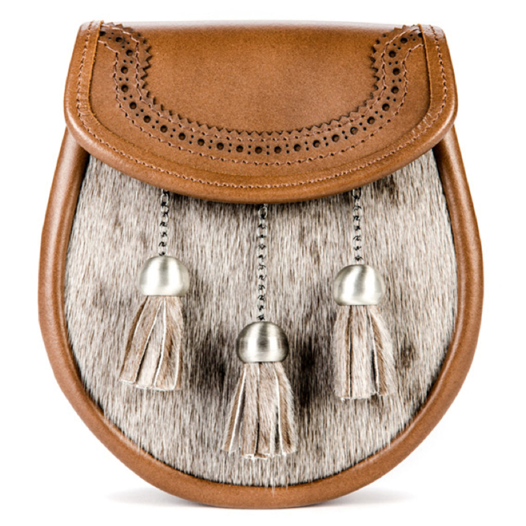 Introducing the Norwood All Leather Brogue Sporran with Sealskin - the perfect accessory to add a touch of sophistication to your semi-dress ensemble.