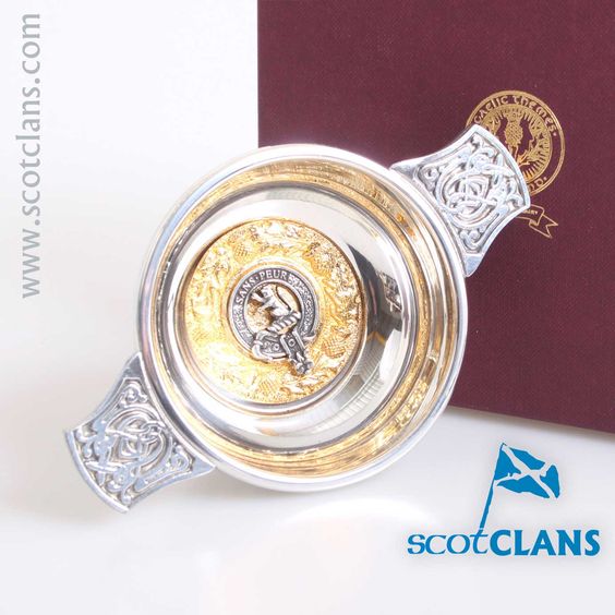 The quaich is made from the finest quality Pewter, with a Gold plated insert around the Clan crest of your choice.