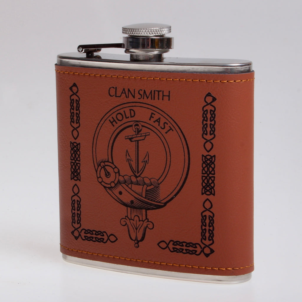 Elevate your drinking experience with the Smith Clan Crest PU Leather Covered Hip Flask. Get yours today and raise a glass to your history, your clan, and the moments that matter most.