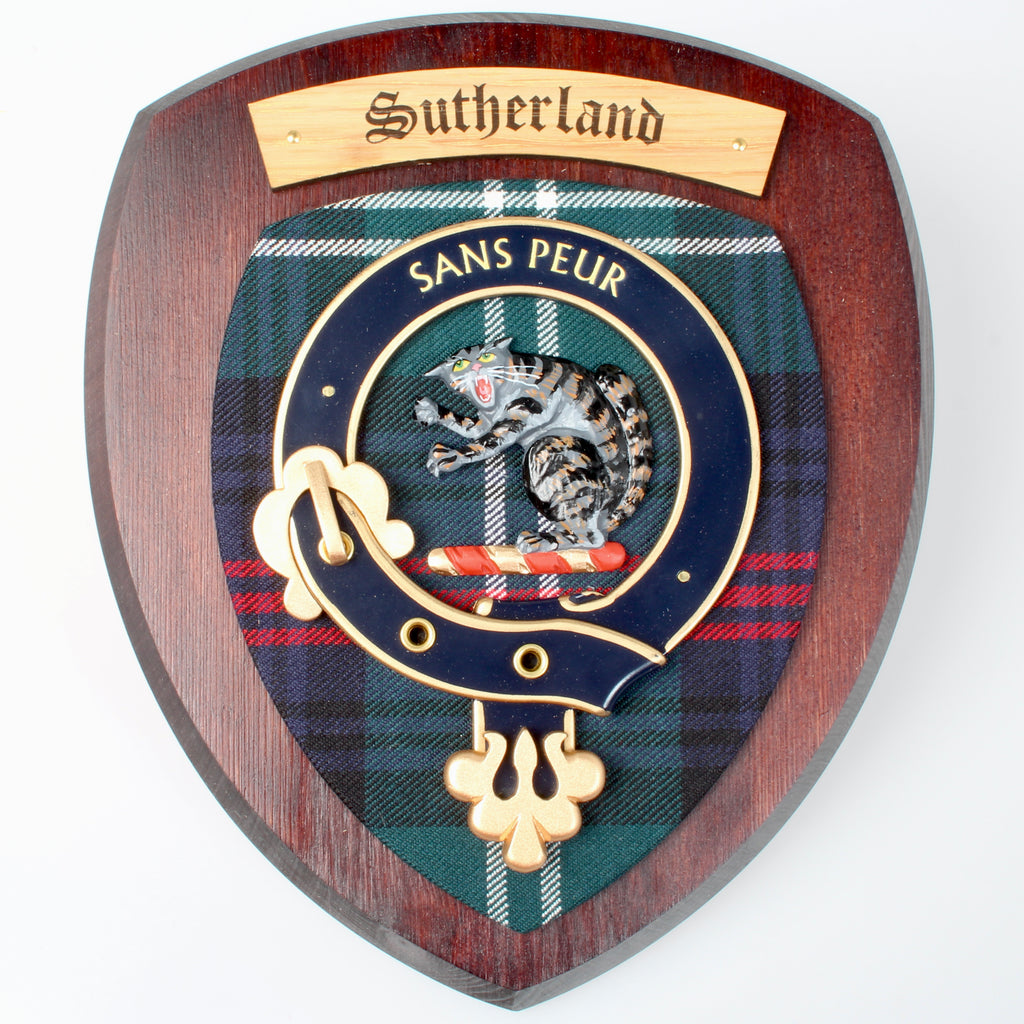 Our Clan Crest Wall Plaque. Handmade in Glasgow, Scotland. This is as Scottish a product as anyone could ever hope to own - from the Hardwood shield to the tartan itself. All the unique designs have been approved by the Standing Council of Scottish Chiefs.