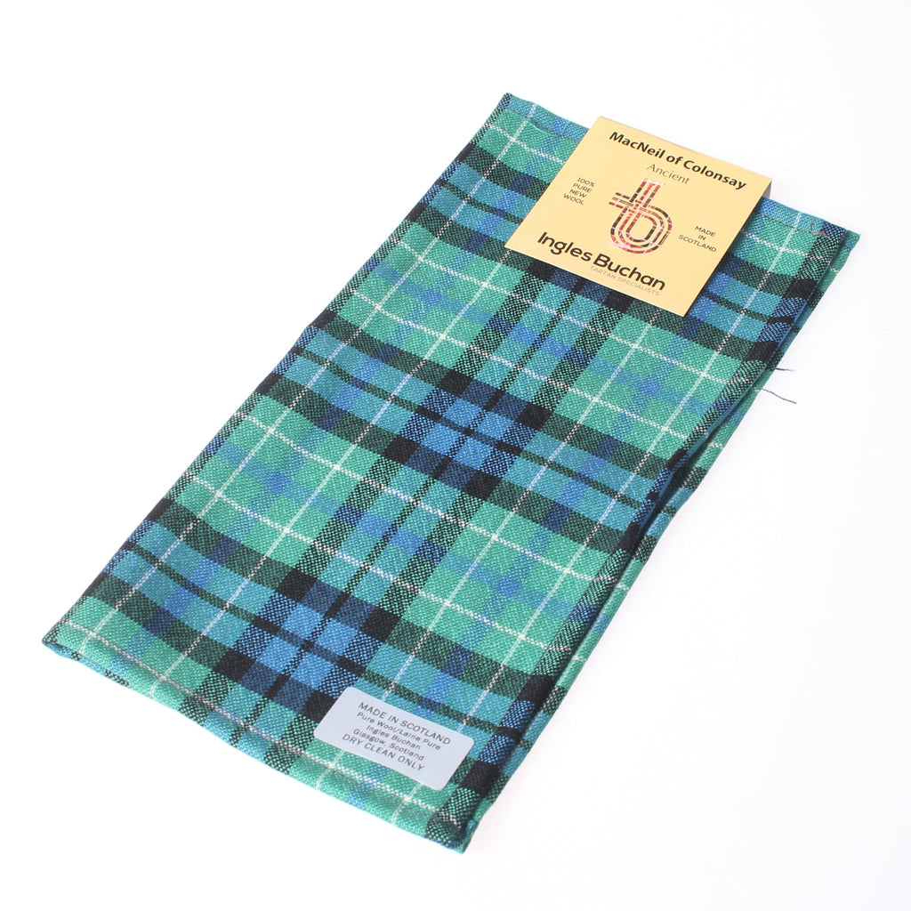 Whether you're attending a wedding, formal event, or simply want to add a touch of elegance to your everyday attire, our Wool Tartan Pocket Square in MacNeil of Colonsay Ancient Tartan is the perfect accessory to complete your look. Embrace the tradition and charm of tartan with this must-have accessory.